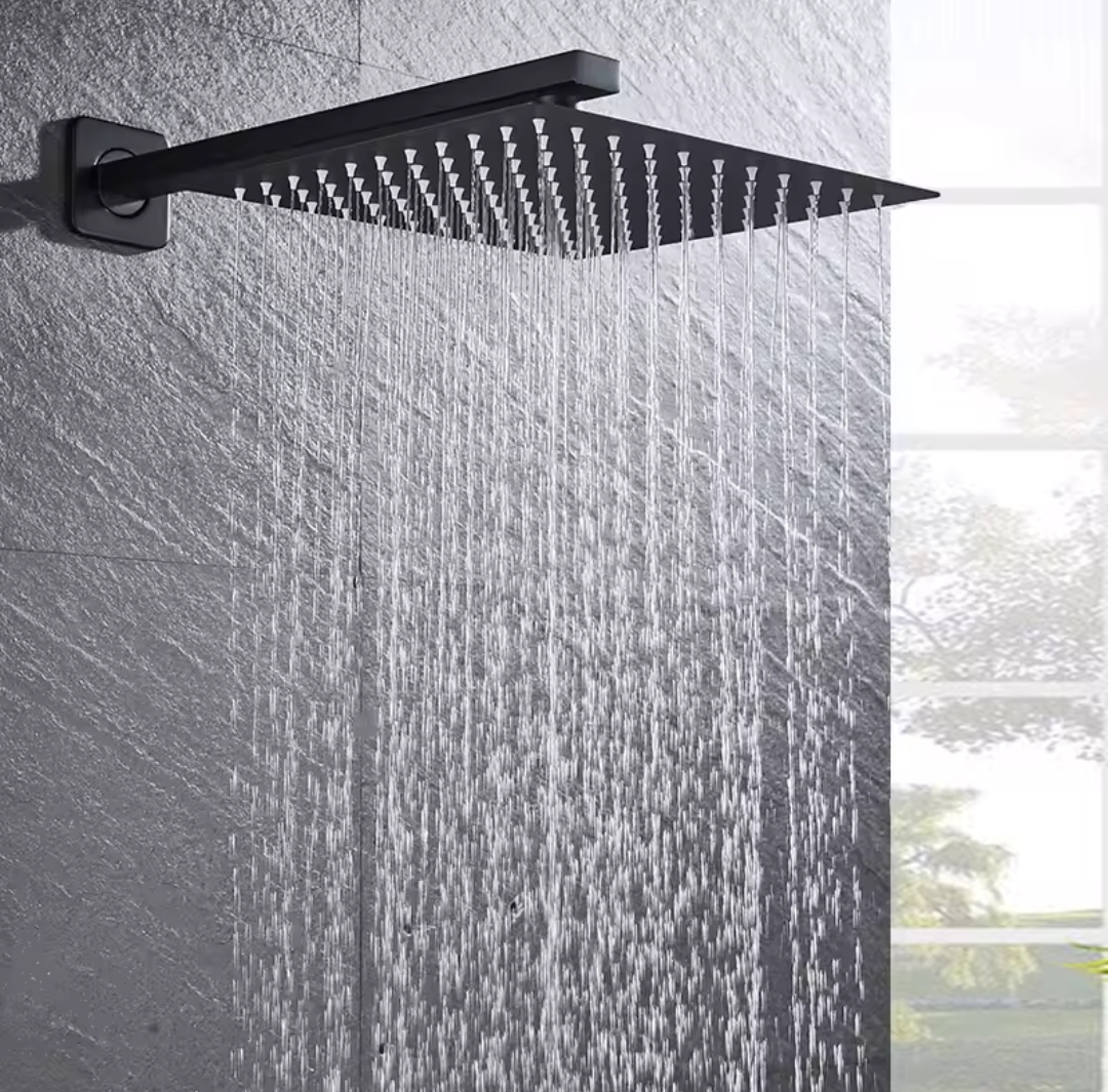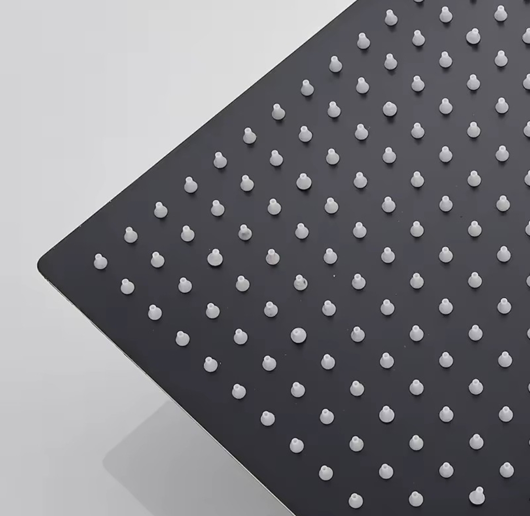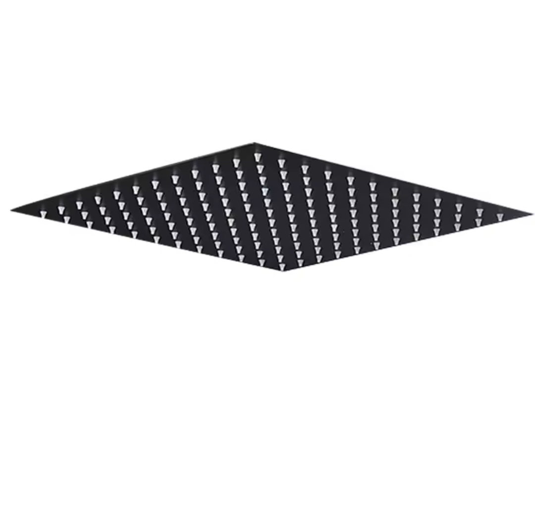 Lisätiedot: Materiaali: Ruostumaton teräs, Suutinaukot: Silikoni, Liitoskanta: Standardi (1/2 tuumaa), Mitat: 40 x 40cm, Väri: Matta-musta, Tuontimaa: Saksa, Pakkaus sisältää: 1 x sadesuihkupaneeli liitoskannalla.