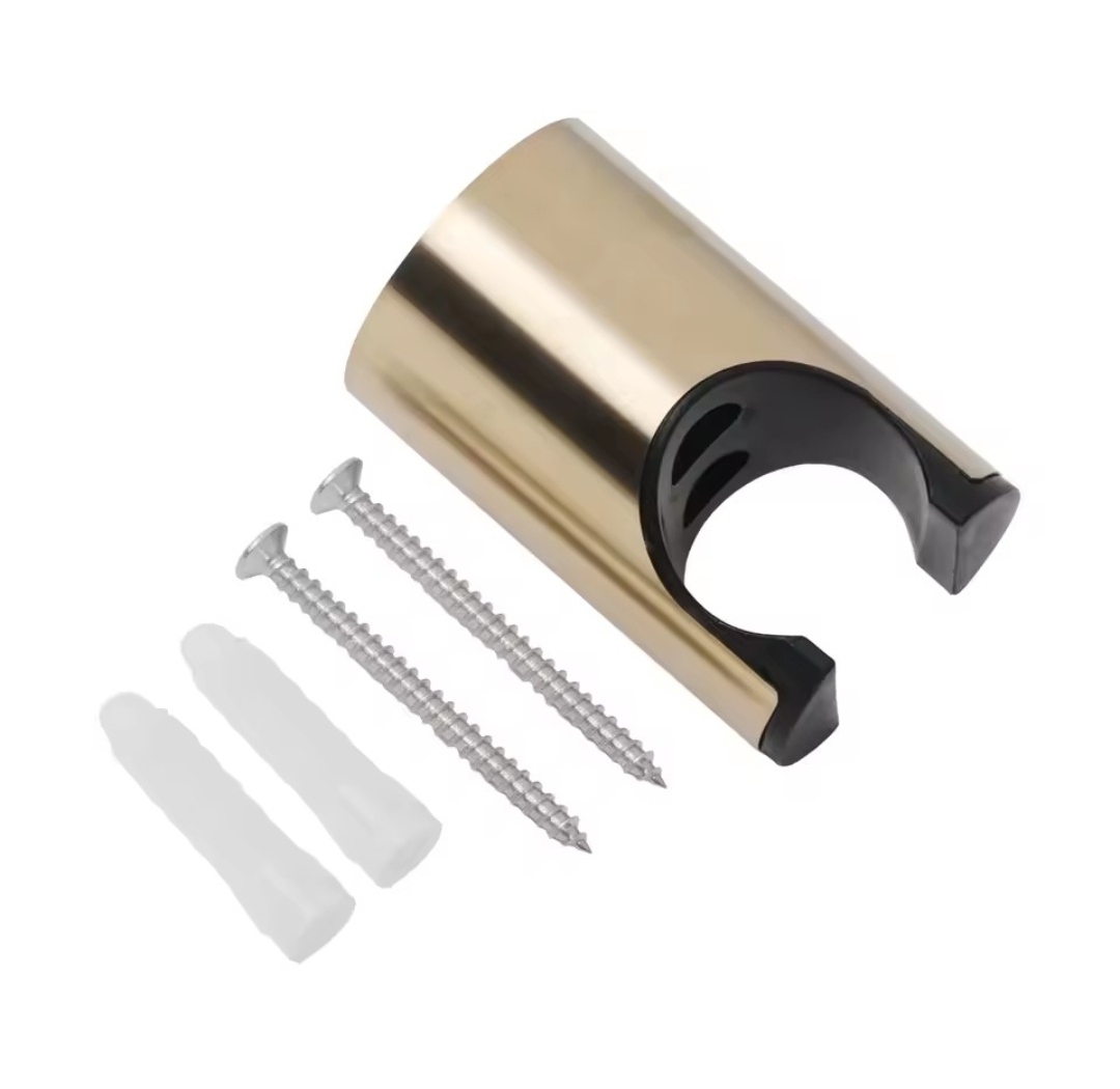 Lisätiedot: Materiaali: Ruostumaton teräs, ABS, Toimivuus: Pystysuora, Soveltuvuus: Suihkutelineeksi / bideetelineeksi, Kiinnitys: Ruuvi, Mitat: 5.6 x 3.1cm,  Sävy: Kulta, Pakkaus sisältää: 1 x seinäteline, 2 x ruuvi, 2 x proppu.
